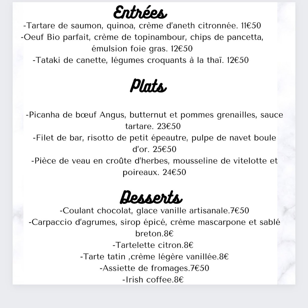 Au Lion Des Flandres Menu
