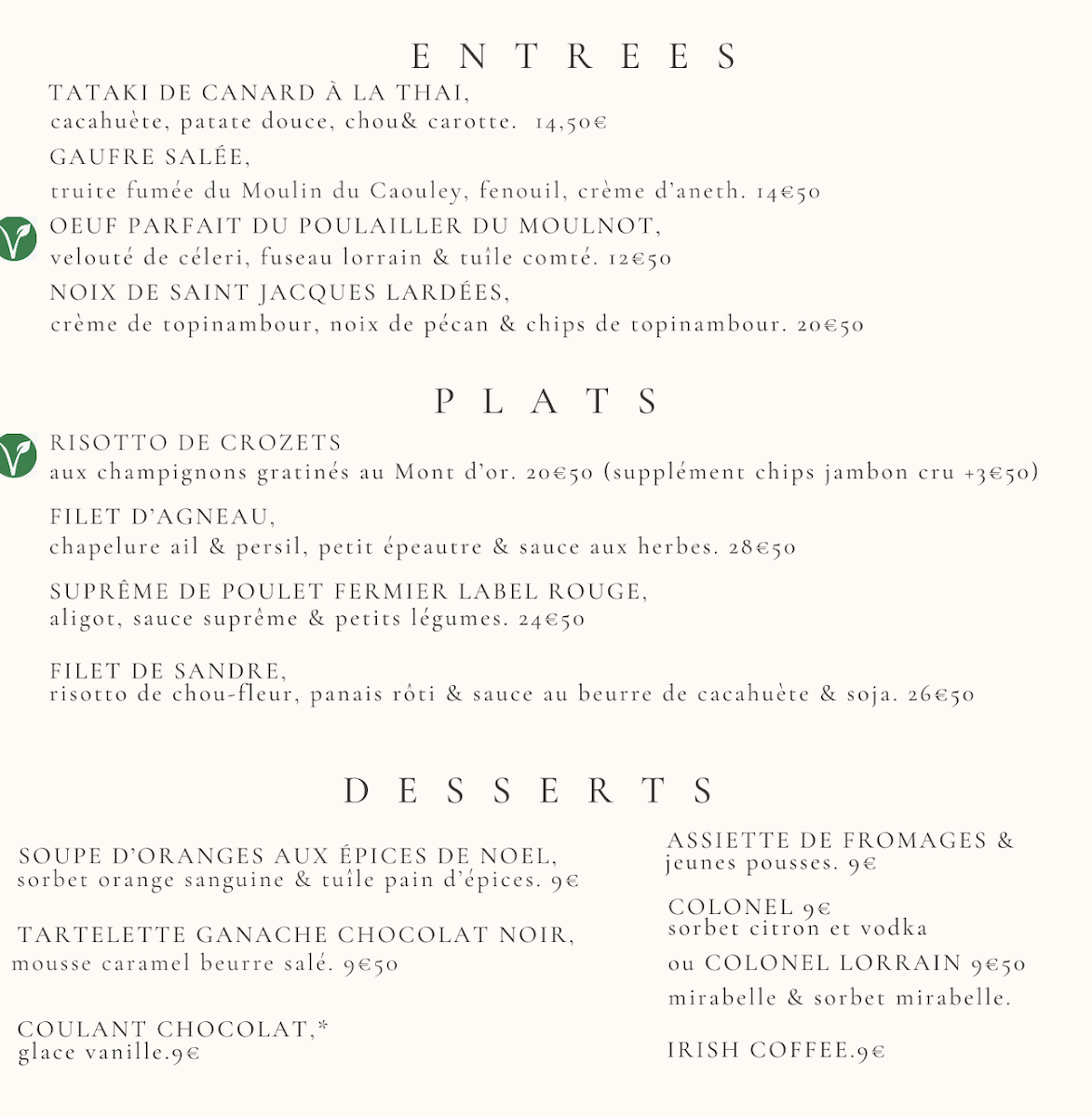 La Souris Verte Menu